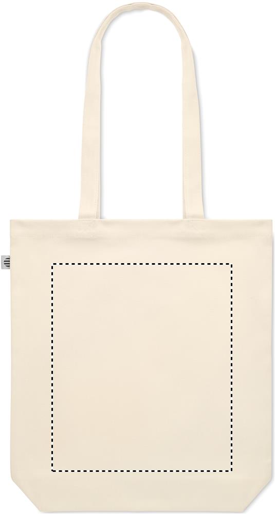Luomupuuvillainen canvasostoskassi pitkillä kahvoilla ja pohjalevyllä. 270 gr/m².