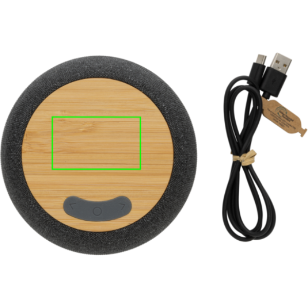 5W langaton kaiutin kristallinkirkkaalla äänellä. Valmistettu FSC® 100% bambusta, RCS ( Recycled Claim Standard) sertifioidusta ABS:stä ja PET:stä. Kierrätetyn materiaalin kokonaismäärä: 51% perustuen tuotteen painoon. RCS sertifiointi varmistaa kierrätettyjen materiaalien täysin sertifioidun toimitusketjun. Kaiuttimessa on 1200mAh:n akku, jolla varmistetaan jopa 6 tunnin toistoaika, ja BT5.3 sulavaa yhteyttä ja kirkasta ääntä varten. Toimintaetäisyys jopa 10 metriä. Mikrofoni. Pakattu FSC-sekoituksesta valmistettuun kraft-pakkaukseen. Sisältää GRS-sertifioidun kierrätetystä TPE:stä valmistetun latauskaapelin. Tuote ja lisätarvikkeet 100% PVC-vapaita.