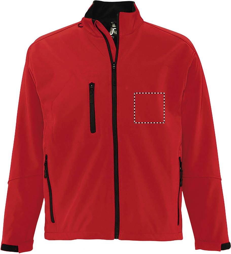 SOL'S RELAX miesten softshell-takki, vedenpitävä ja hyvä hengittävyys. Valmiiksi kaarevat hihat ja moderni leikkaus takaavat maksimaalisen mukavuuden. 2 vetoketjullista sivutaskua, 1 vetoketjullinen rintatasku, säädettävä kiristysnauha vyötäröllä, säädettävät tarranauhalliset hihansuut ja mikrokuituvuori. Kankaan yksityiskohdat: Pehmeä kuori 340 g / m², 3 kerrosta, 94% polyesteriä - 6% elastaania Myydään vain painettuna