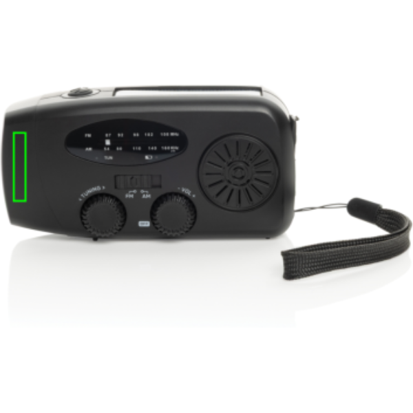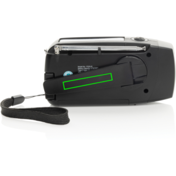 Logo trade mainoslahja kuva: RescueWave hätätilaradio, valmistettu RCS-kierrätysmuovista.