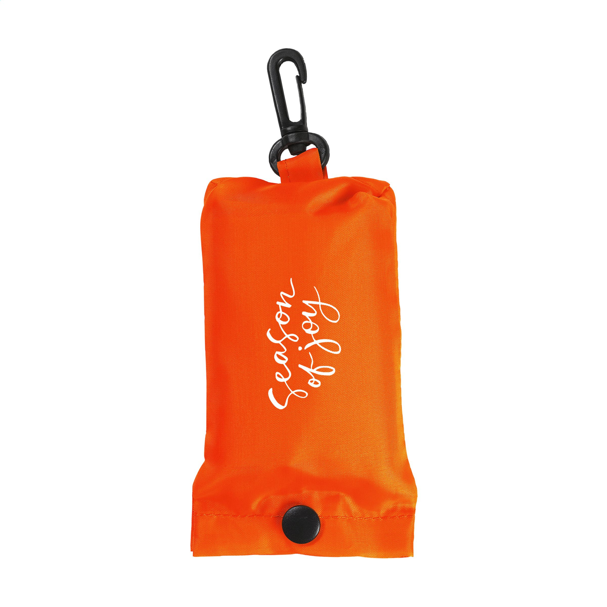 Taitettava ostoskassi 190T polyesterista. Pussissa, jossa neppari ja karabiinikoukku. Meas. avattuna 38 x 53 cm.