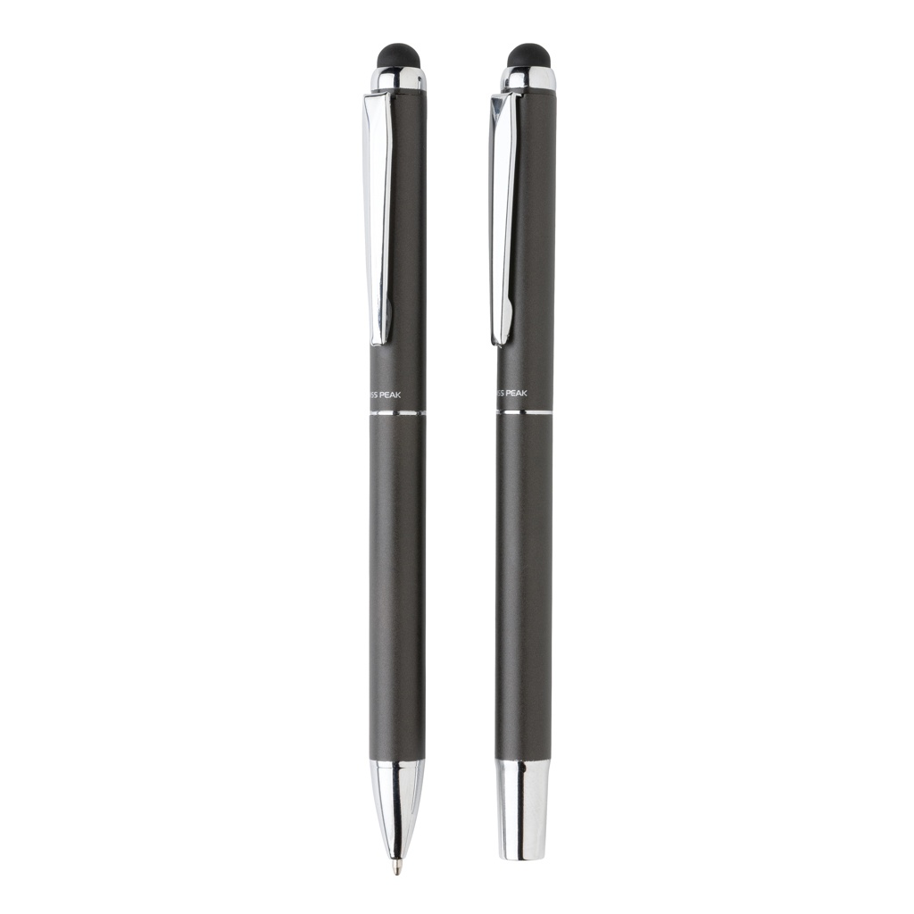 Swiss Peak deluxe kynäsetti kuulakärkikynällä ja mustetäytekynällä. Kummassakin tämän setin kynistä on laadukas alumiinirunko ja kaunis mattametallinen viimeistely. Kummassakin kynässä on sininen Dokumental-muste. Kirjoituspituus kuulakärkikynälle in 1200 metriä ja mustetäytekynälle 400 metriä. Kynäsetti toimitetaan ylellisessä PU-kotelossa ja mustassa lahjapakkauksessa.