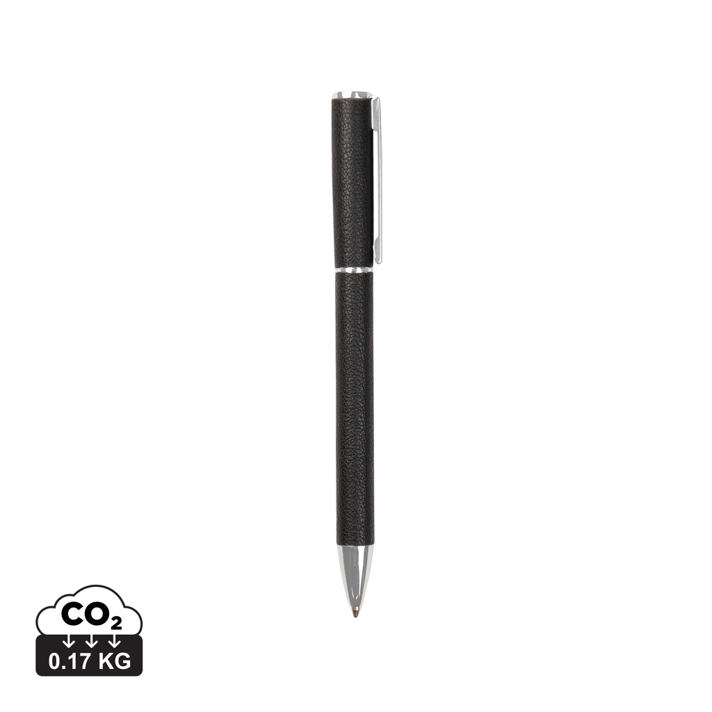 Tyylikäs kynä kääntömekanismilla. Valmistettu kierrätetystä alumiinista, messinkiosista ja PU-materiaalista. Sininen Dokumental-muste tarjoaa noin 1200 metriä kirjoituspituutta, ja kirjoitusleveys on 1,0 mm. Timo-sarjassa on tarjolla minimalistisia toimistotarvikkeita, jotka on valmistettu RCS-sertifioidusta kierrätetystä materiaalista. Niissä tyylikäs muotoilu yhdistyy modernin työpaikan tarpeisiin. RCS:n (Recycled Claim Standard) mukaisesti sertifioitu. RCS-sertifiointi takaa, että koko toimitusketjun kierrätetyt materiaalit on sertifioitu. Kierrätetyn sisällön kokonaismäärä perustuu tuotteen kokonaispainoon. Tämä tuote sisältää 27 % RCS-sertifioitua kierrätettyä alumiinia.