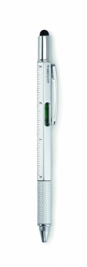 Twist veiksmo gulsčiuko rašiklis iš ABS su liniuote, rašikliu ir „philips“ galvute bei plokščios galvutės atsuktuvo antgaliais. Juodas rašalas.