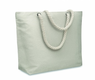 Paplūdimio arba pirkinių krepšys iš perdirbtos medvilnės (80 % perdirbtos medvilnės, 20 % įprastos medvilnės) su virvelių rankenomis. 220 gr/m².