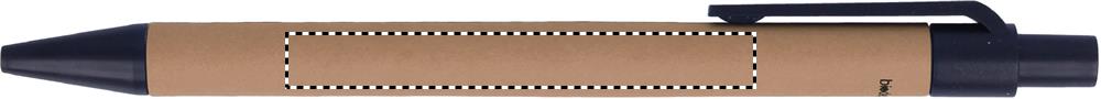 Perdirbto popieriaus sąsiuvinis su rašikliu. Dvigubas laidas. 140 paprasto perdirbto popieriaus puslapių (70 lapų). Stumdomas tušinukas perdirbtoje kartoninėje dėžutėje ir biologiškai skaidomame plastike. Mėlynas rašalas. Juodas elastingas rašiklio laikiklis.
