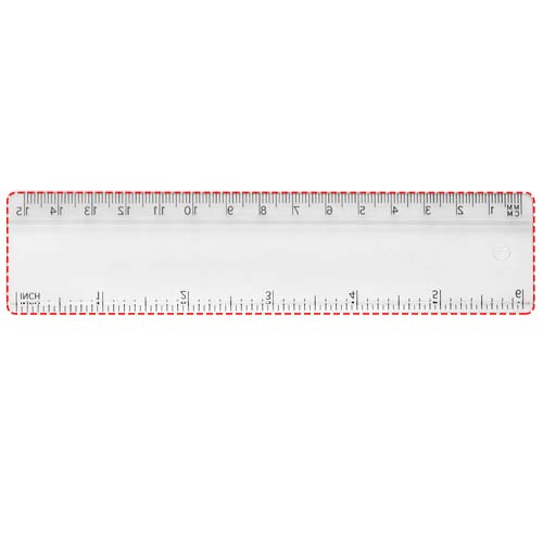 Tvirta plastikinė liniuotė su žymėjimais tiek coliais, tiek centimetrais. Atkreipkite dėmesį, kad liniuotės ženklai spausdinami kartu su meno kūriniais, paprastos liniuotės nežymės.