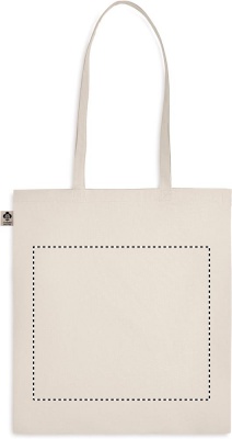 Organiskās kokvilnas iepirkumu maisiņš ar gariem rokturiem. 105 gr/m².