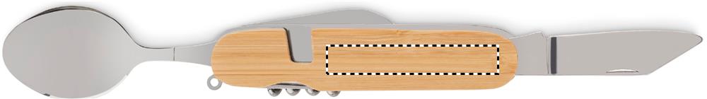 Metāla daudzfunkcionāls salokāms kempinga galda piederumu komplekts koka korpusā. 5 funkcijas. Komplektā dakša, karote, konservu nazis, vīna attaisāmais un nazis. Jūs varat sadalīt gabalus 2.