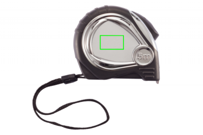 5m/19mm ABS hromēts korpuss ar mīkstu gumijas rokturi un dzeltenu matētu lenti. Ietverot jostas klipsi un rokas siksnu.