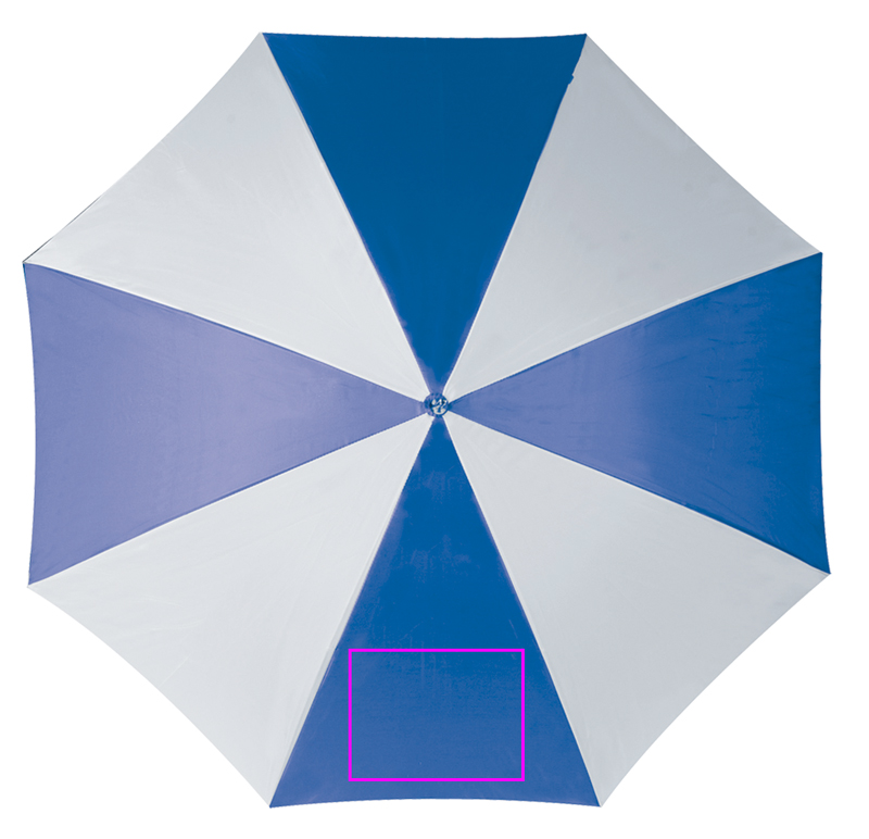 Автоматический зонт с металлическим каркасом, прямой деревянной ручкой и покрытием из полиэстера 170T. Ваш логотип будет напечатан на одном сегменте.