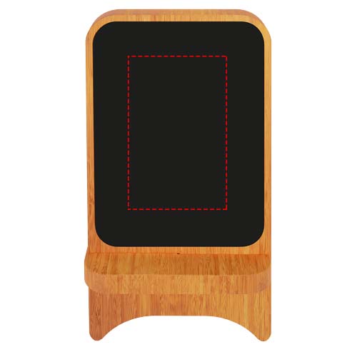 Беспроводное зарядное устройство мощностью 10 Вт из резины и бамбука с антибактериальной обработкой и светящимся логотипом. Вход Type C. Поставляется в черной подарочной коробке из крафт-бумаги вторичной переработки с кабелем из переработанного пластика РЕТ. Патент Ведомства по интеллектуальной собственности Европейского союза.