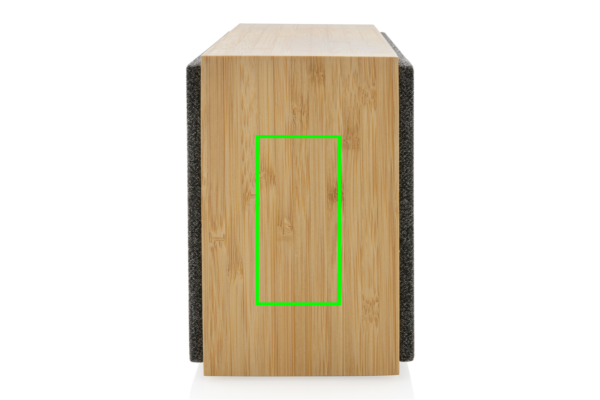 Роскошный и мощный динамик 20 Вт с чистым звуком и мощными басами. Внешний корпус изготовлен из бамбука, сертифицированного FSC на 100%. Пластиковые компоненты изготовлены из переработанного АБС-пластика, сертифицированного по стандарту RCS (Recycled Claim Standard). Общее содержание переработанных материалов: 17 % от общего веса изделия. Сертификация RCS гарантирует полностью сертифицированную цепочку поставок переработанных материалов. Динамик оснащен BT 5.1 для легкой и плавной работы на расстоянии до 10 метров и низкого энергопотребления. Аккумулятор емкостью 1200 мАч обеспечивает до 6 часов воспроизведения и может быть полностью перезаряжен за 3 часа. С функцией подхвата и микрофоном для ответа на (видео) звонки. Упакован в коробку из крафт-бумаги FSC mix. Включает сертифицированный RCS переработанный кабель для зарядки TPE.