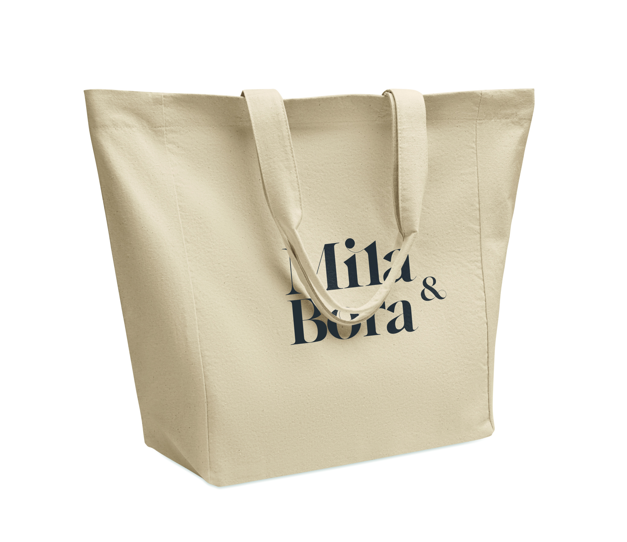 Cotton shopping bag with short handles and gusset. 220 gr/m².