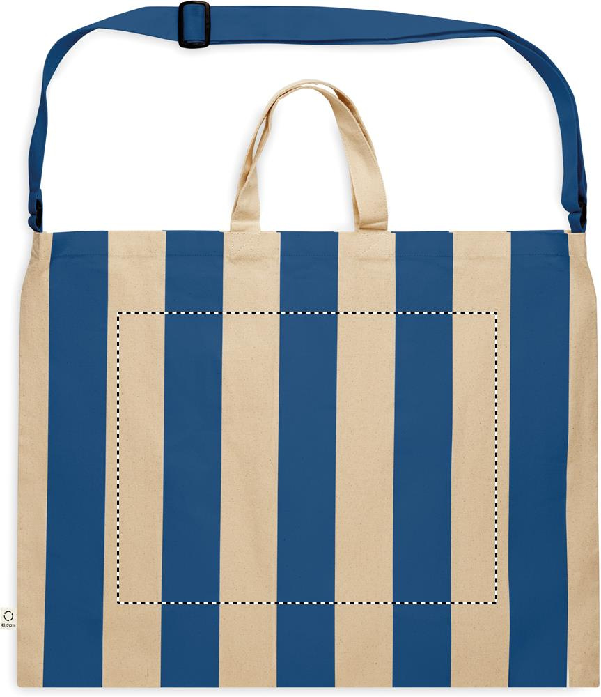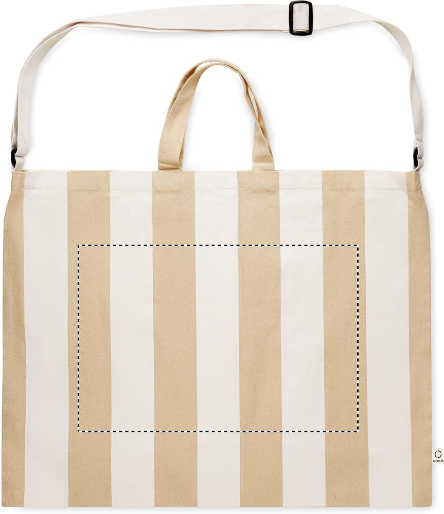 Extra large striped beach bag in 280 gr/m² recycled cotton (80%) and recycled polyester (20%) with inner pocket. Short handles and one large adjustable shoulder strap.