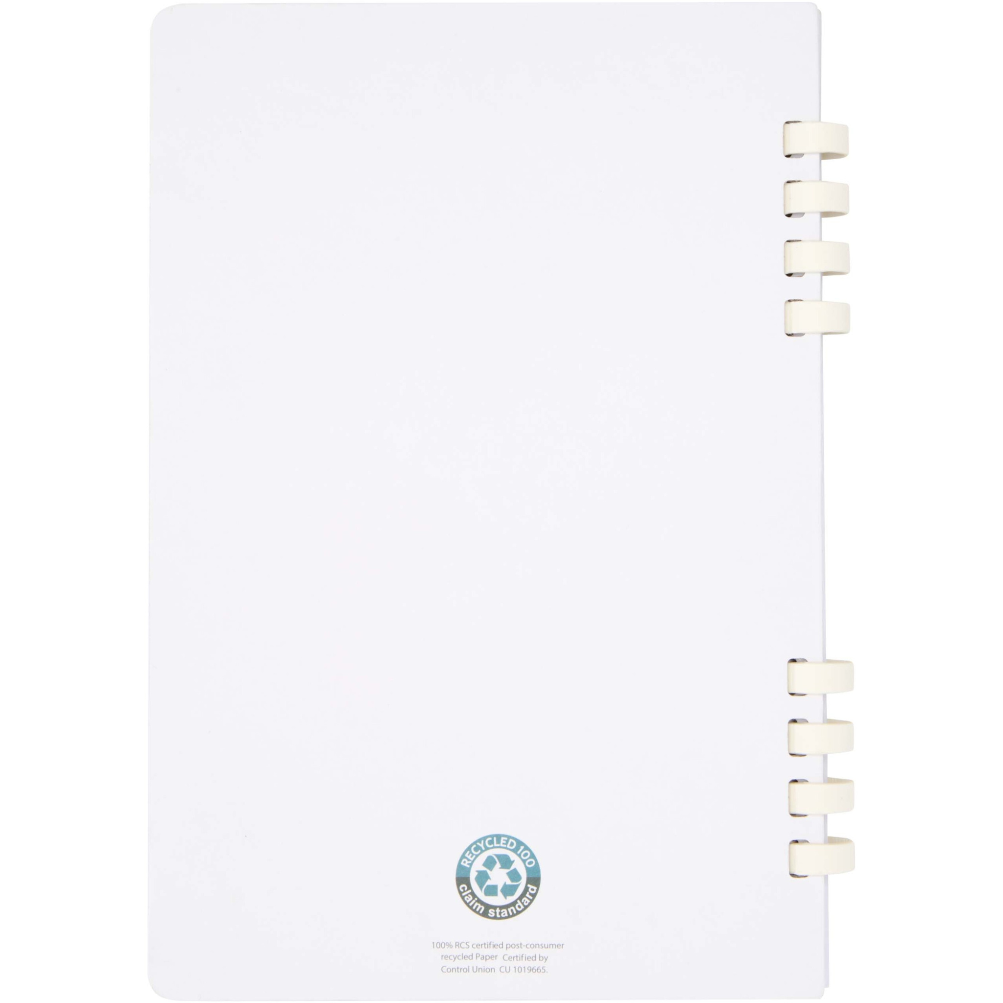 Блокнот на спирали Fil формата А5 в твердом переплете с 60 линованными листами изготовлен из переработанной бумаги плотностью 70 г/м², сертифицированной RCS. Изготовленный полностью из переработанных материалов, этот практичный вариант легче утилизировать и перерабатывать после использования.