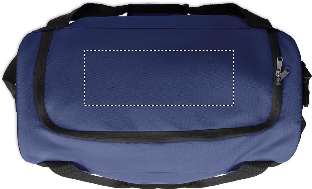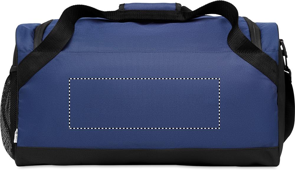 Спортивная или дорожная сумка из 600D RPET с большим фронтальным и внутренним карманом на молнии и регулируемым съемным плечевым ремнем.
