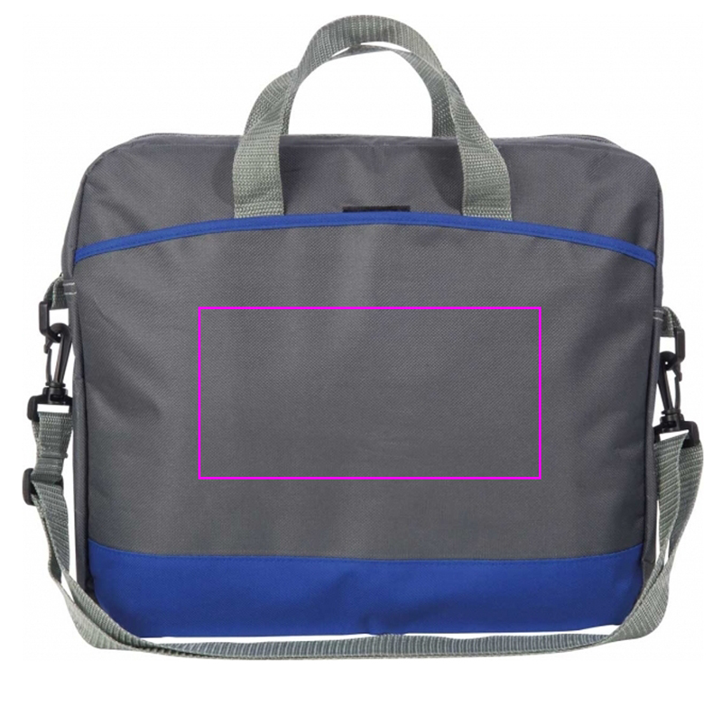 Серая сумка для ноутбука с яркими цветными акцентами, просторным внутренним отделением и передним отделением, на котором мы напечатаем ваш логотип.