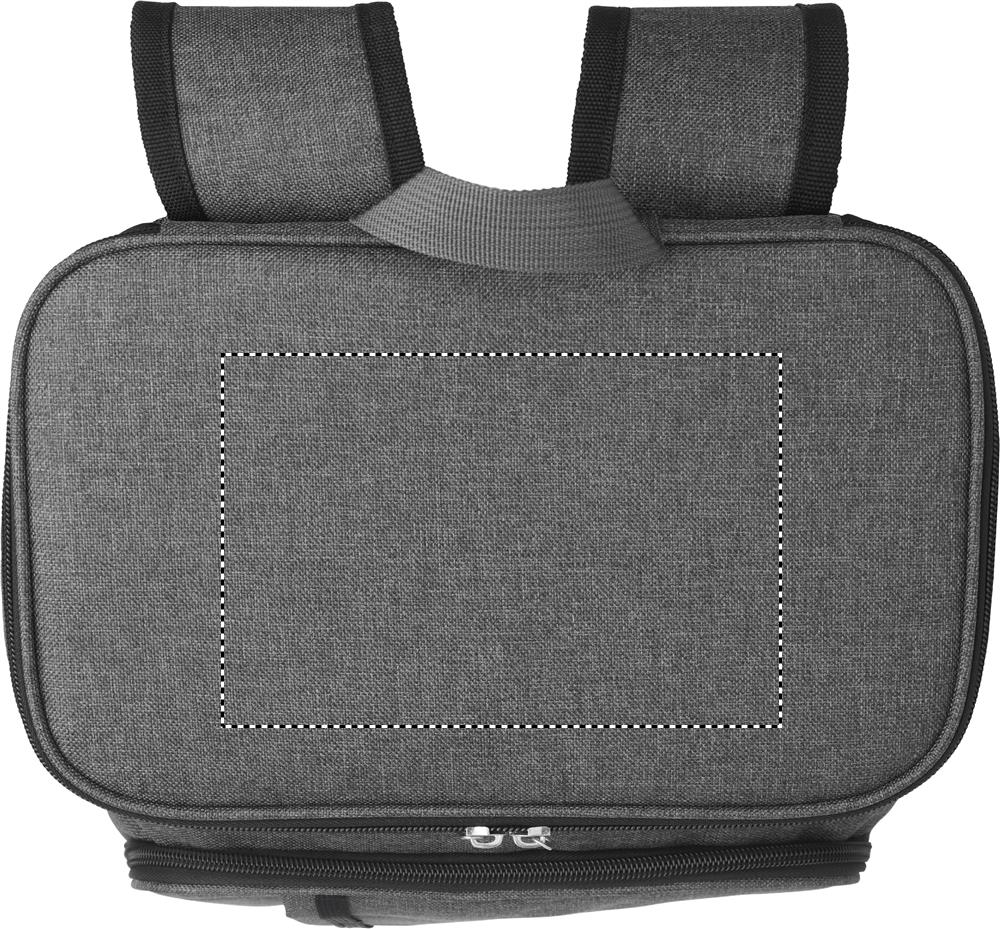 Рюкзак - холодильник или термо рюкзак для пикника. Двухцветный 600D из RPET. В комплекте столовые принадлежности на 2 персоны. Все приборы из нержавеющей стали. В комплекте 2 вилки, ложки и 2 стакана из смесевого материала 70% пшеничной соломы и 30% полипропилена.