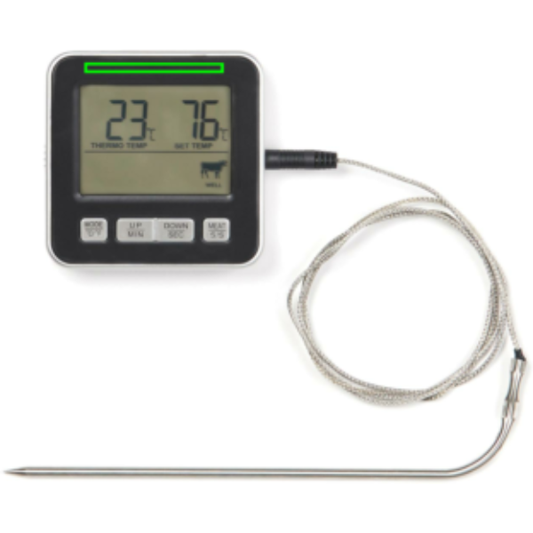 Подавайте идеальную еду с этим удобным кулинарным термометром. Независимо от того, жарите ли вы сочный ростбиф или печете особенный пирог, этот многофункциональный термометр окажется бесценным на кухне, готовите ли вы в духовке, на гриле или запекаете. Функция таймера и функция будильника помогут вам контролировать процесс. Термометр также показывает градусы Цельсия и Фаренгейта, чтобы вы могли настроить его в соответствии со своими потребностями. Ни одна кухня не обходится без него.