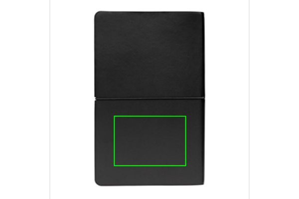 A5 anteckningsbok med mjukt omslag. 96 blad/192 sidor 80 g/m2 krämfärgat linjerat papper. Mjukt omslag i PU med svart elastiskt, horisontellt band.