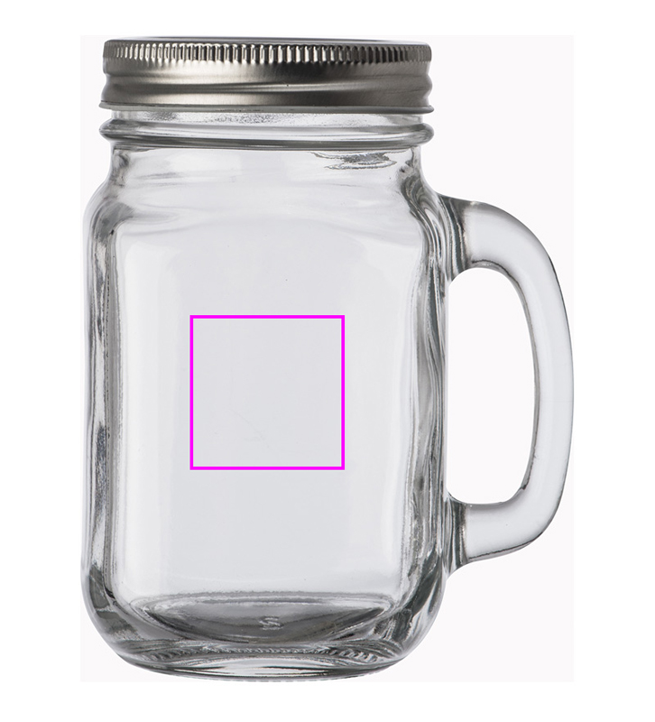 Glaskanna (450 ml) med metallskruv och halmhål (halm ingår ej). Din logotyp kommer att lasergraveras på skruvlocket.