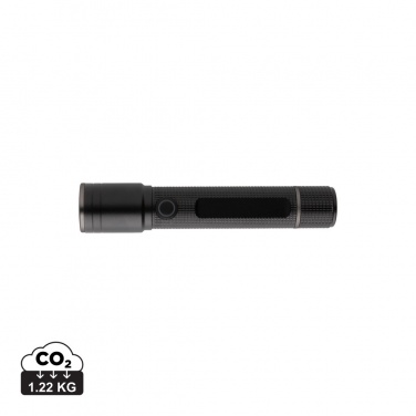 Funktionalitet, prestanda och design förenas i denna laddningsbara 3W-ficklampa tillverkad av RCS-certifierad återvunnen aluminium. Totalt återvunnet innehåll: 20% baserat på total produktvikt. RCS-certifiering garanterar en fullständigt certifierad leveranskedja för de återvunna materialen. På grund av sin IP4-klassning är den väderbeständig så den kan lätt tas med utomhus. Den kraftfulla glödlampan skapar upp till 100 lumen och en stråle som når upp till 100 meter. Ficklampan använder ett återuppladdningsbart a-klassbatteri så du behöver inte byta batterier. Ladda helt enkelt upp via ditt USB-uttag och den medföljande type C RCS-certifierade återvunna kabeln. Den högkvalitativa lampan har 5 lägen inklusive SOS-funktion. Batteriet på 500 mah ger en användning på upp till 4 timmar på en enda laddning. Aluminium förlorar inte sina egenskaper i återvinningsprocessen och kan återvinnas i all oändlighet. Produkten och tillbehören är 100% fria från PVC. Levereras i FSC-mixförpackning.