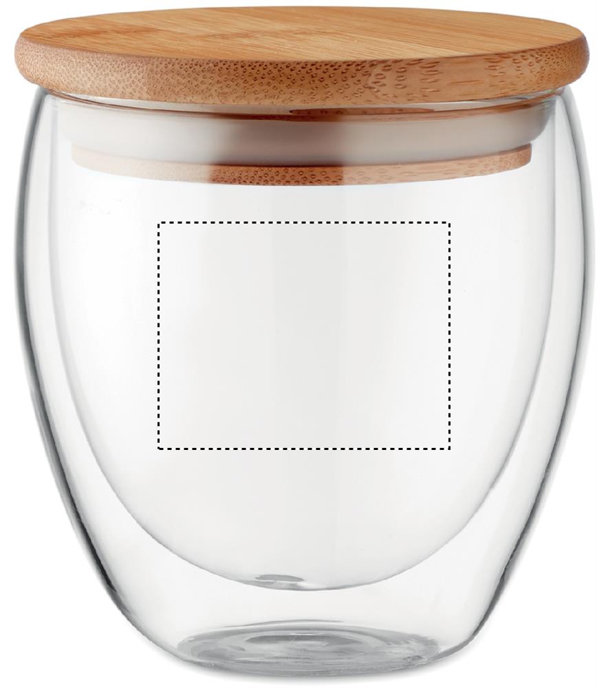 Glas med dubbelvägg i värmeresistent glas med bambu lock som har en silikonring. Volym 250 ml. Eftersom bambu är ett naturligt material kan vissa färgskiftningar förekomma.