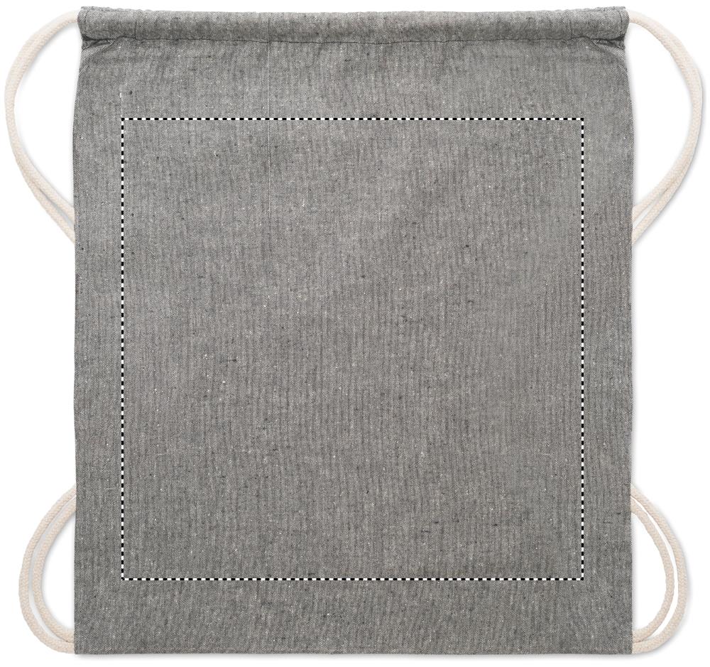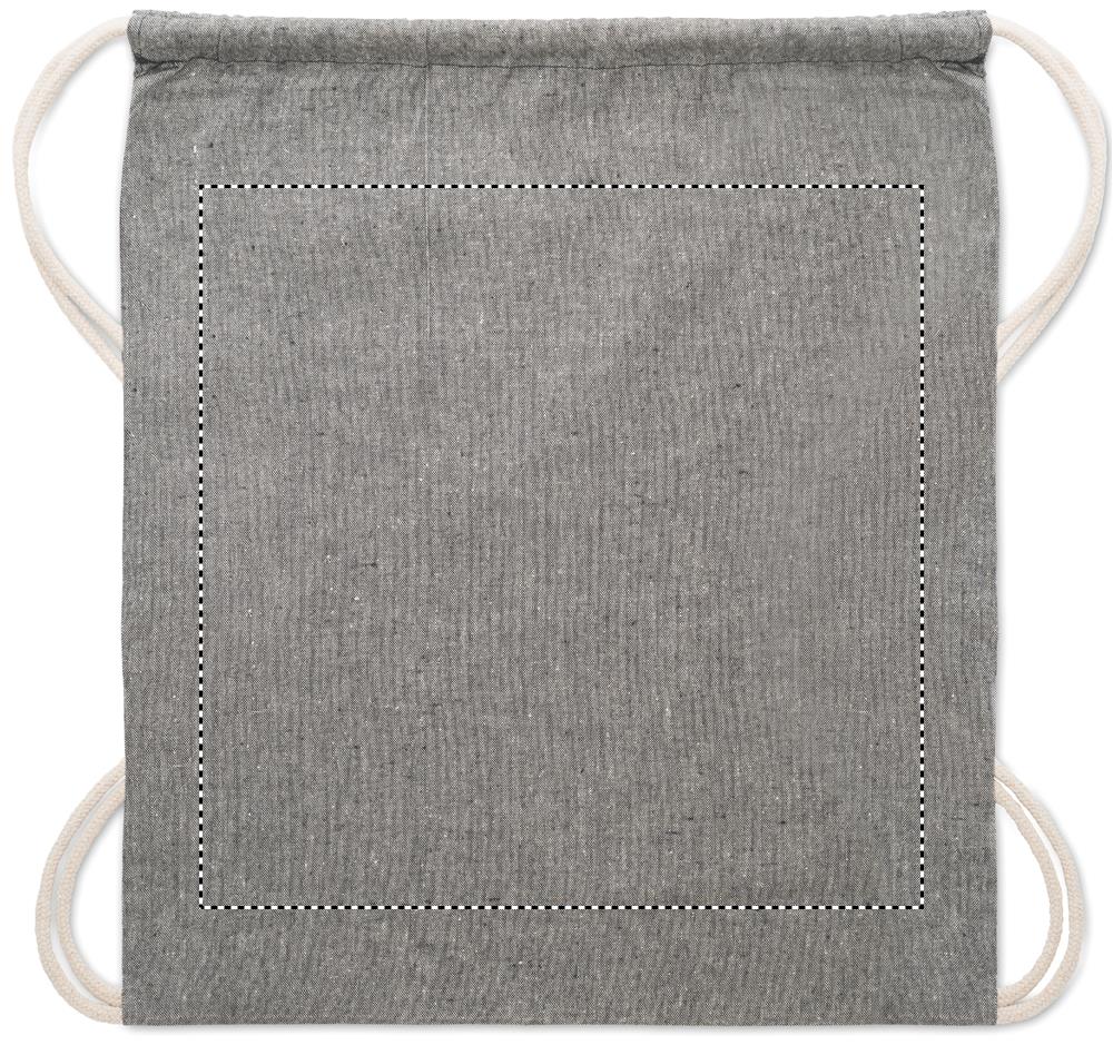 Påse med dragsko i återvunnen bomull (80 % återvunnen bomull, 20 % vanlig bomull). 140 gr/m².