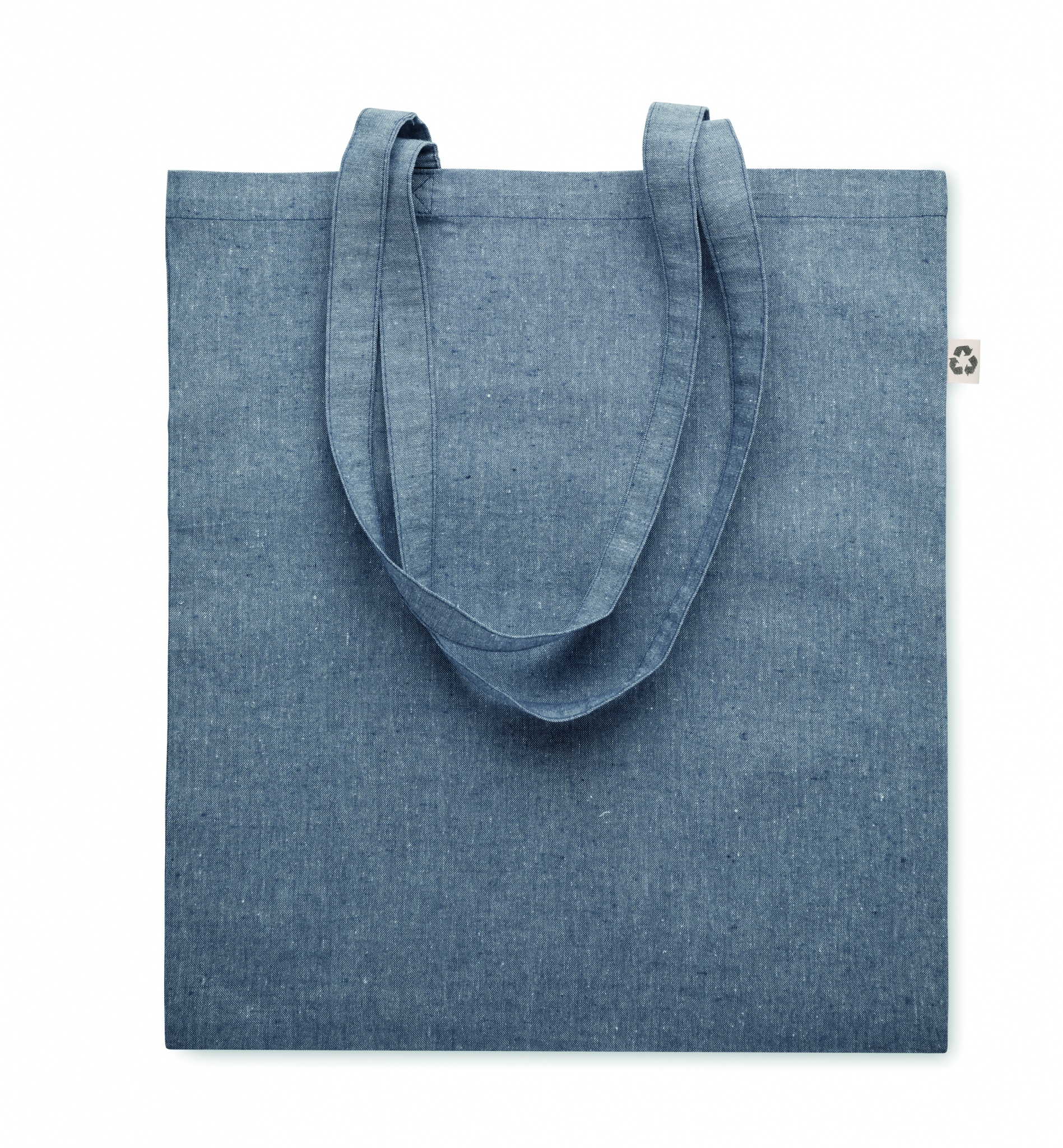 Tygkassae i återvunnen bomull (80 % återvunnen bomull, 20 % bomull) med långa handtag. 140 gr/m².