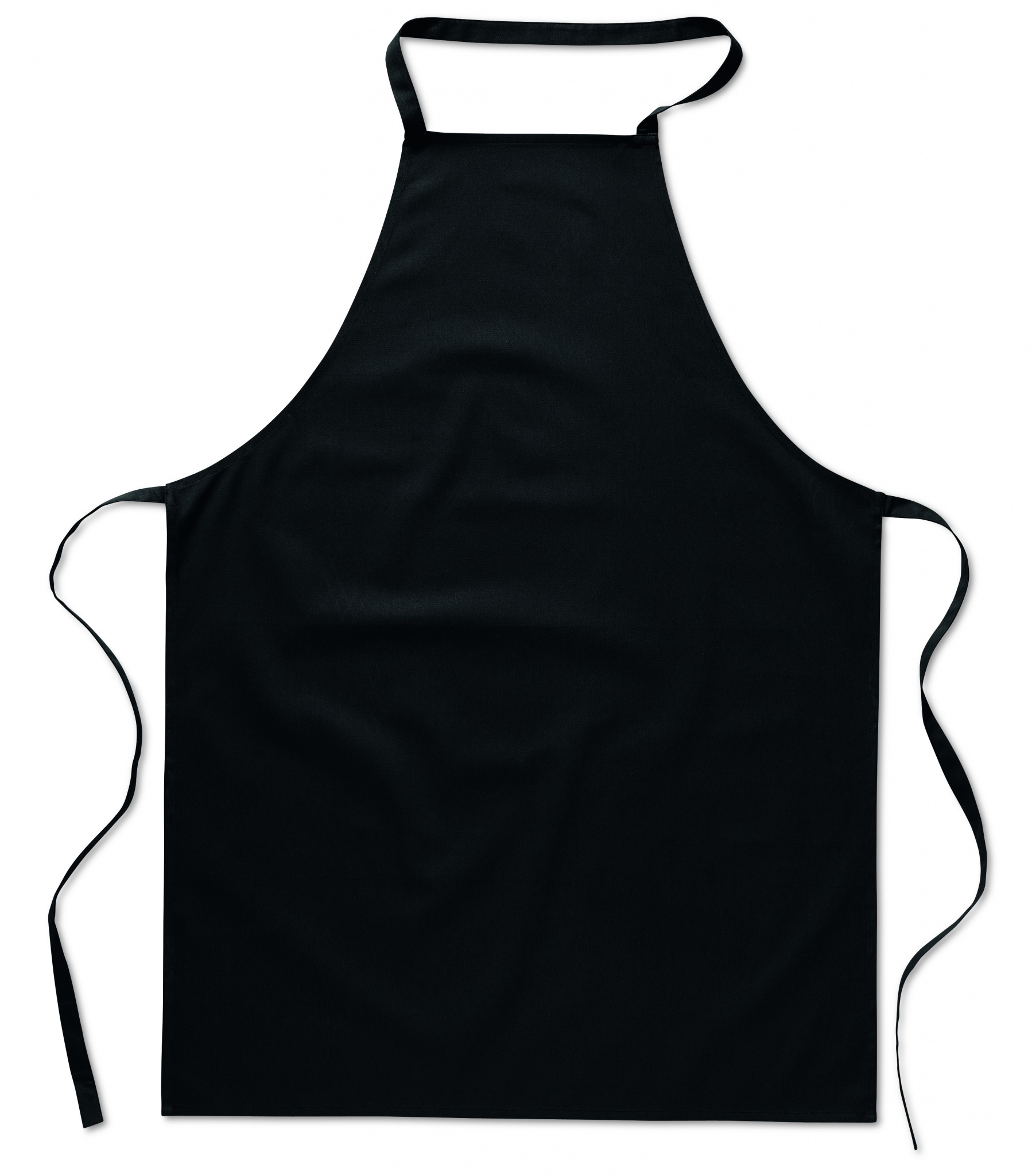 Köksförkläde i 180 gram/m² 100 % bomullstwillmaterial. Remmarna knyts på ryggen.