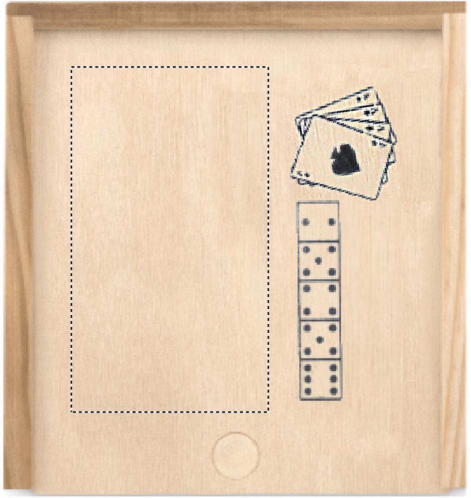 Spelset med 54 kort och 5 tärningar i fin trälåda.