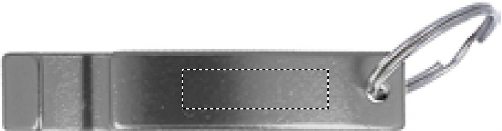 Flasköppnare med nyckelring i aluminium med blank kromad yta.