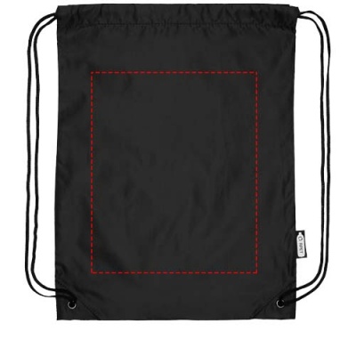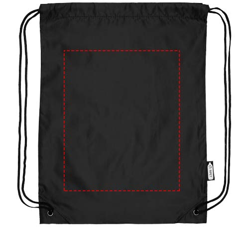 Oriole RPET ryggsäck med dragsko. Tålig påse tillverkad av 100% återvunnen plast som bidrar till att minska plastavfall. Varje påse är tillverkad av 3,5 återvunna PET-flaskor. Stort huvudfack med dragskostängning i svart färg. Kapacitet: 5 liter, klarar upp till 5 kg vikt. 190T återvunnet PET.