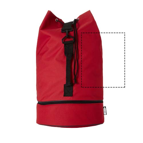 Vattentålig seglarväska tillverkad av återvunnen PET plast med ett rymligt 20 liters huvudfack med dragskostängning, sidohandtag och justerbar axelrem. Det finns också ett separat fack med blixtlås för mindre föremål.