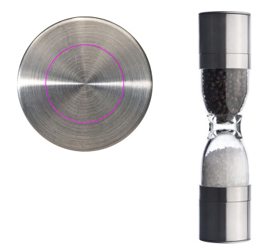 Krydda upp det! Piffa upp din kundrelation med denna fina 2-i-1 salt- och pepparkvarn. Den rostfria stål- och plastkvarnen har två justerbara keramiska kvarnar. Grovt salt och färsk peppar mals lätt. Vi kommer att gravera din logotyp centrerad på ett rostfritt stållock på ena sidan. Enkelpackad i kartong.