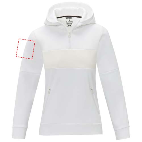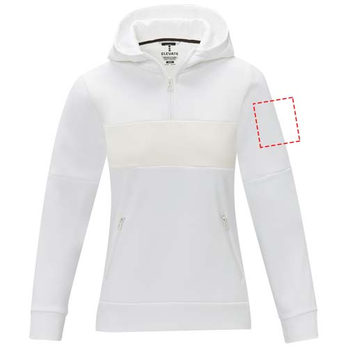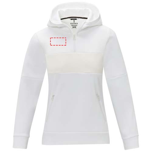 Sayan damtröja med halv dragkedja och huva i anorakmodell - en unik kombination av prestanda och stil. Anorakdesignen kombinerar mode och funktion på ett smidigt sätt och har en kvarts dragkedja för mångsidiga lager på lager. Tillverkad av en 350 g/m²-blandning av polyester och Sorona®-stickning. Sorona®-fibern förbättrar jackans miljövänlighet genom att integrera ett hållbart element utan att kompromissa med prestandan. Kontrasttyget på frontpanelen, tillverkat av 280T ripstop nylon, bidrar till designen med sin hållbarhet och struktur och är den perfekta platsen för att visa upp ditt varumärke. Oavsett om du ger dig ut på ett utomhusäventyr eller bara tar dig igenom vardagen kombinerar Sayan huvtröja mode med funktion på ett enkelt sätt. Tröjan är designad med en figurnära passform för en feminin look.