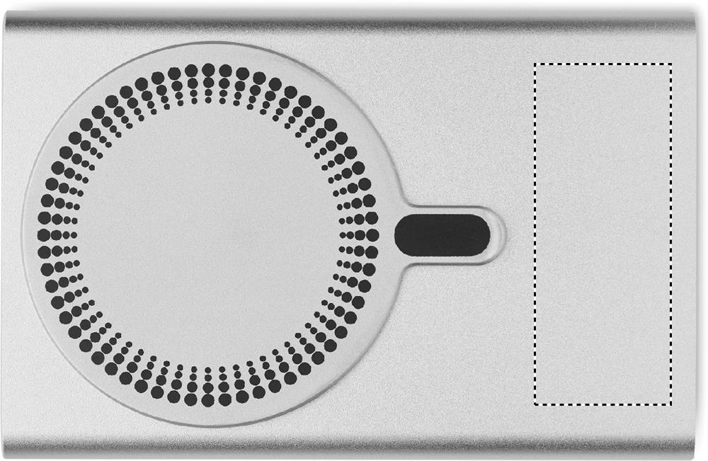 Magnetisk powerbank 5000mAh med trådlös laddning 15W, via kabel 20W, i återvunnen aluminium. Utgång: DC 9V/1,66A. In/utgång: Typ-C. Stöd för Power Delivery (PD) för laddning av den senaste bärbara datorn MacPro®. Ingång/utgång: Typ-C. Levereras med extra metallring för icke magnetsika telefoner