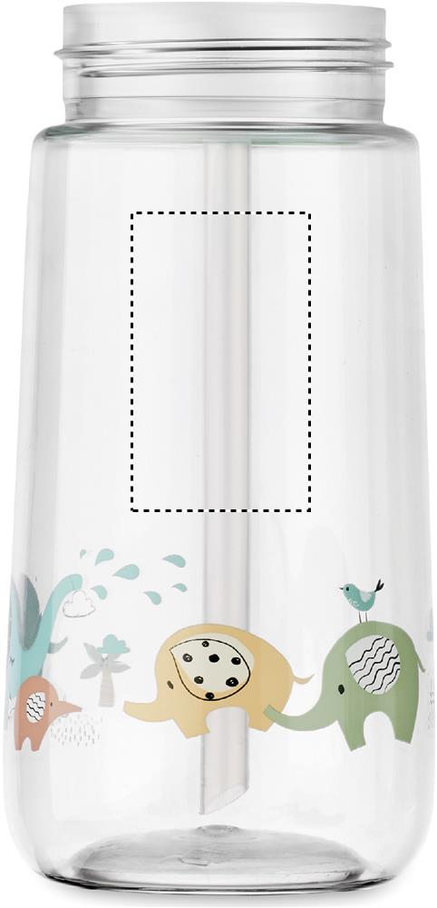 Flaska för barn i tritan med inbyggt sugrörslock. Mönster tryck på flaskans nedre del. Läckagefri. Kapacitet: 450 ml.