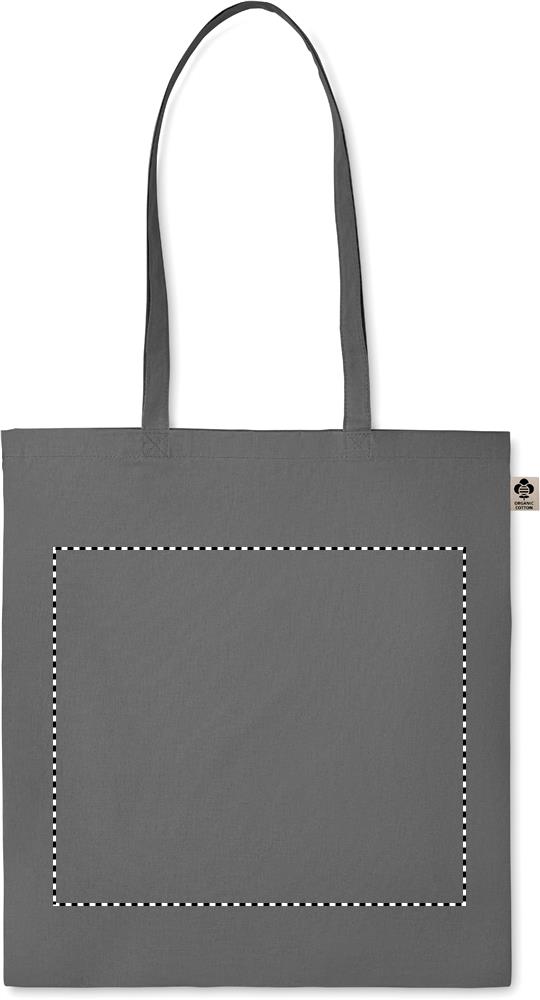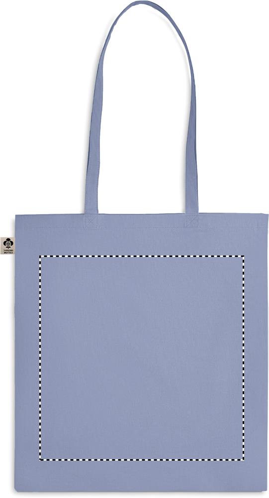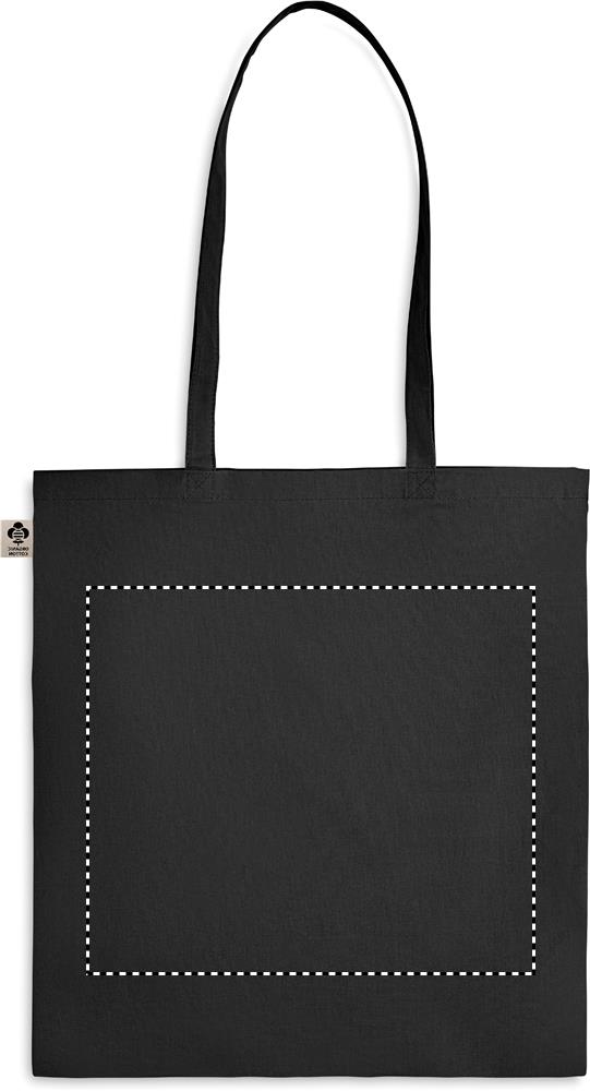 Kasse i ekologisk bomull med långa handtag. 140 gr/m².