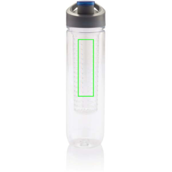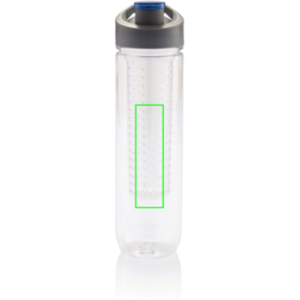Trendig vattenflaska i miljösmart Tritan, 800ml, med inbyggd fruktbehållare som tillför ditt vatten både vitaminer och smak. Fruktbehållaren kan också användas för att kyla ner vattnet genom att lägga i iskuber.